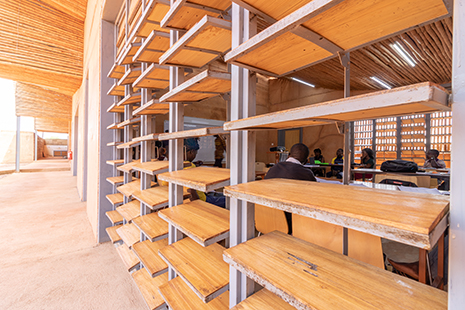 The Burkina Institute of Technology is based on a system of repeated modules, housing classrooms and auxiliary functions, arranged orthogonally to define a rectangular courtyard. The orthogonal layout of modules allows the campus to be expanded incrementally according to its needs. The modules are staggered, so that air can flow through the central void, creating a cool space where students can relax and interact.
